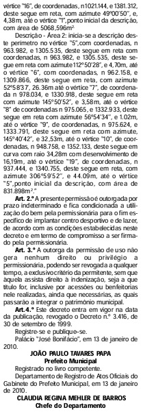 Veja o teor do decreto de 2010 que garantiu a área à Associação