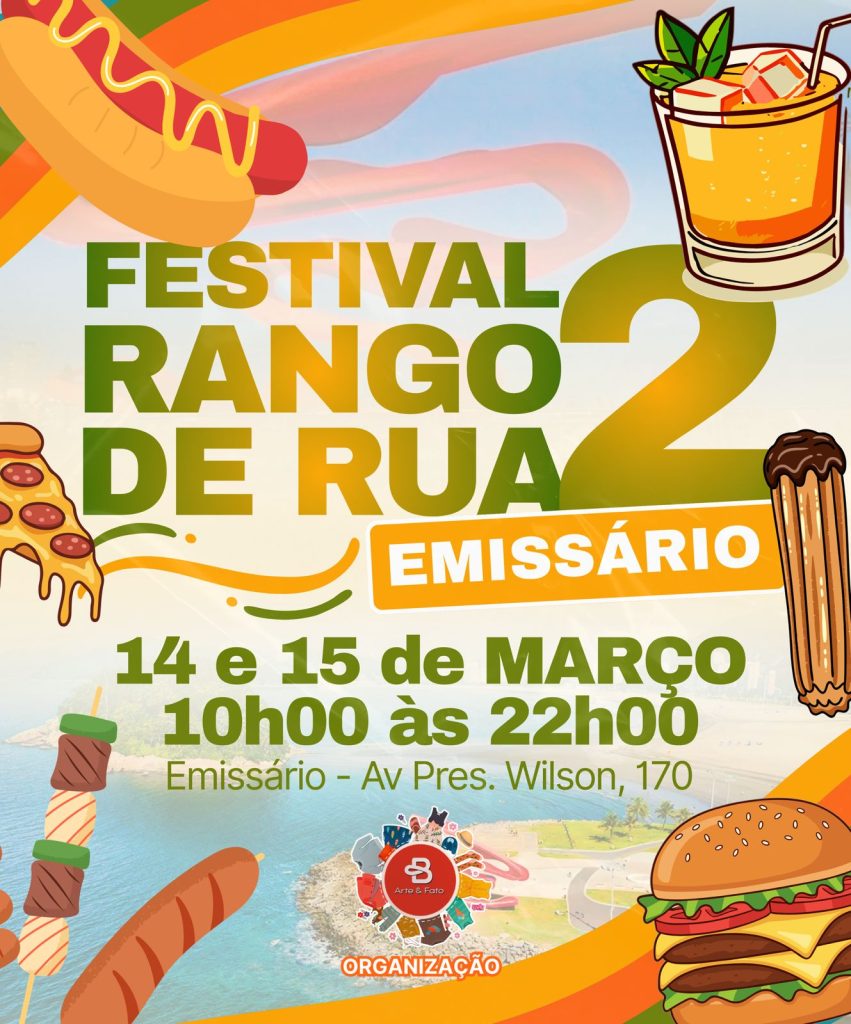 O Emissário Submarino, também conhecido como Quebra-Mar, um dos principais pontos turísticos de Santos, recebe a 2ª edição do Festival Rango de Rua nos dias 14 e 15 de março, das 10h às 22h.
